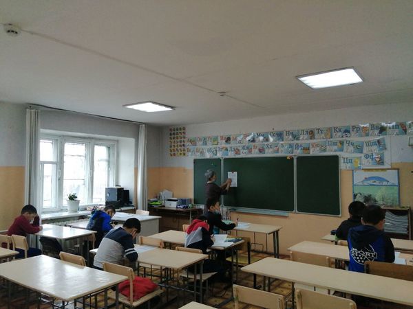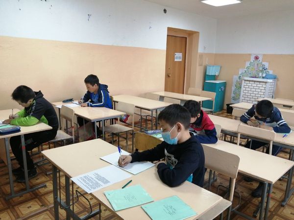 На фото: учащиеся школ Улуг-Хемского и Монгун-Тайгинского кожуунов, желающие поступить в КПКУ в 2021 году, консультация по английскому языку в гимназии N5 в 7 классе.