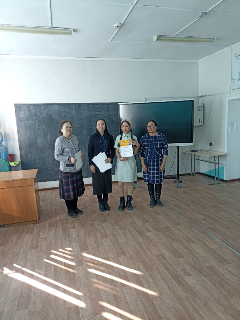 место — Салчак Татьяна, учащаяся 11 «а» класса МБОУ СОШ #2 с. Мугур-Аксы, руководитель Маадыр Чинчи Борисовна.