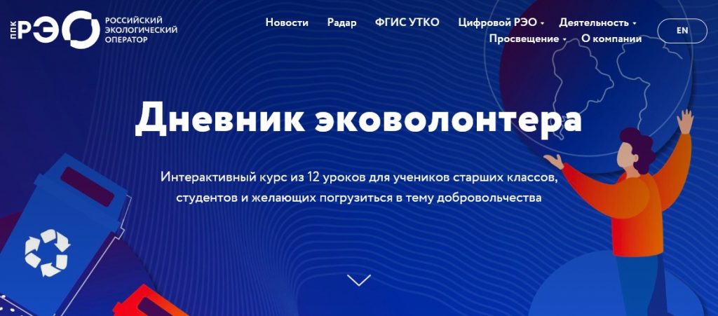 — интерактивный курс «Дневник эковолонтера» из 12 уроков для учеников старших классов, студентов и желающих погрузиться в тему добровольчества. Ссылка на материалы: https://reo.ru/dobro